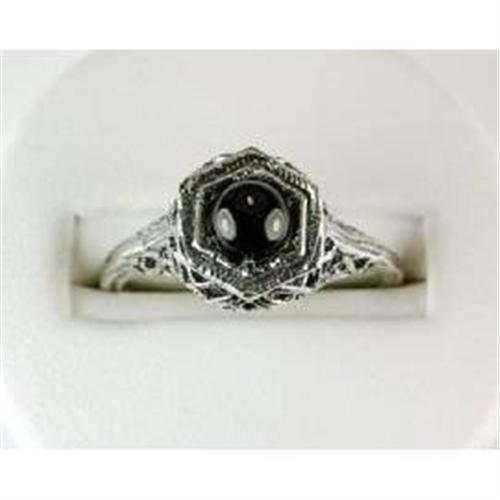 This ANTIQUE Style ring is an AUTHENTIC and ACCURATE copy of a ring from 1925 but THIS one is in MINT condition! It is STERLING SILVER and it features a beautiful Genuine BLACK ONYX = .47 CARATS! The BLACK ONYX is surrounded by very beautiful filigree work that was typical of the 1920's. This ring can be worn as an 'Antique BLACK ONYX Engagement Ring' - or - as an 'Antique BLACK ONYX Ring'. It is a Size 7 and it can be resized either larger or smaller.