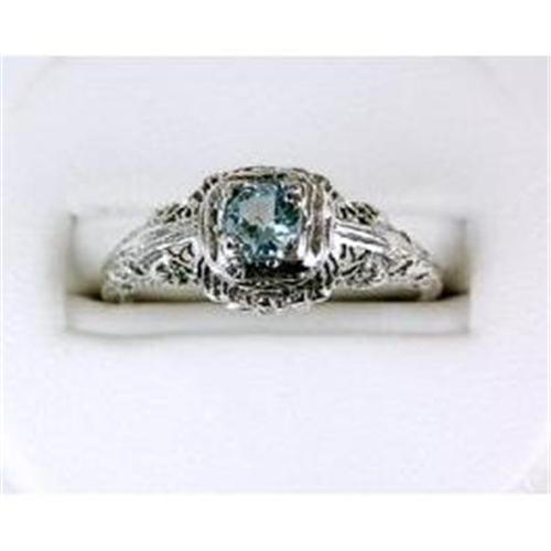 This ANTIQUE Style ring is an AUTHENTIC and ACCURATE copy of a ring from 1925 but THIS one is in MINT condition! It is STERLING SILVER and it features a beautiful Genuine BLUE TOPAZ = .47 CARATS! The BLUE TOPAZ is surrounded by very beautiful filigree work that was typical of the 1920's. This ring can be worn as an 'Antique BLUE TOPAZ Engagement Ring' - or - as an 'Antique BLUE TOPAZ ring'. It is a Size 7 and it can be resized either larger or smaller.