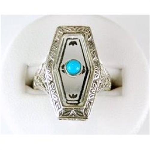 This Exquisite Crystal ring is an Authentic & Accurate copy of a ring from the 1930's - and THIS one is in Mint condition.It is a Sterling Silver ring featuring a CRYSTAL with a center TURQUOISE. The Crystal is surrounded by very beautiful filigree work. The Crystal measures 3/4" x 3/8". This ring is a size 6 3/4 and I can easily resize it for you.