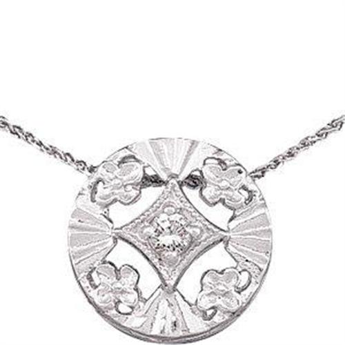 This Antique Style Pendant Slide is 14k WHITE GOLD and it features a SPARKLING DIAMOND = .05 CARATS surrounded by exquisite FILIGREE WORK.