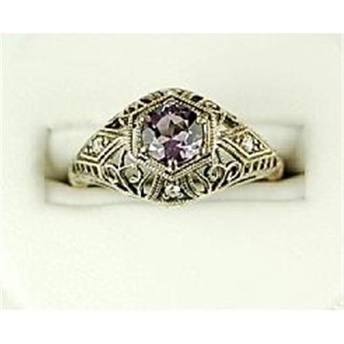 THIS VINTAGE STYLE RING EXQUISITE REPRODUCES THE FILIGREE STYLE WORK MADE POPULAR IN THE 1930'S. It is a Solid Sterling Silver ring featuring a round AMETHYST = .75 Carats! The Amethyst is surrounded by EXQUISITE filigree work set with 4 Diamonds. The ring is now a size 8 and I can easily resize it for you.