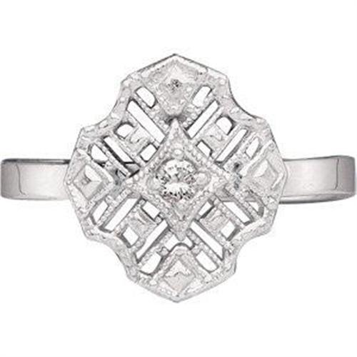 This Antique Style ring is 14k White Gold and it features the EXQUISITE FILIGREE work made popular in the 1930's. The center of the Filigree work is a SPARKLING DIAMOND. This lovely ring is a Size 7 and it can be resized either larger or smaller.