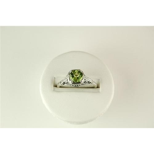 This ANTIQUE Style ring is an AUTHENTIC and ACCURATE copy of a ring from 1925 but THIS one is in MINT condition! It is STERLING SILVER and it features a beautiful Genuine PERIDOT = 1.00 CARAT! The PERIDOT is surrounded by very beautiful filigree work that was typical of the 1920's. This ring can be worn as an 'Antique Peridot Engagement Ring' - or - as an 'Antique Peridot Ring'. It is a Size 8 and it can be resized either larger or smaller.