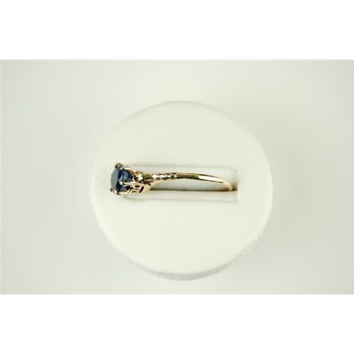 This ANTIQUE Style ring is an AUTHENTIC and ACCURATE copy of a ring from the 1930s but THIS one is in MINT condition! It is 14k Yellow Gold and it features a Genuine BLUE SAPPHIRE = .70 CARATS! The Sapphire is surrounded by exquisite FILIGREE work. This ring is a Size 7 1/4 and it can be resized either larger or smaller.