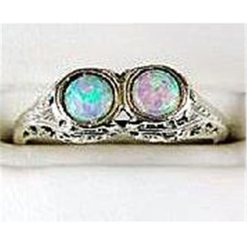 This ANTIQUE Style ring is an AUTHENTIC and ACCURATE copy of a ring from 1925 but THIS one is in MINT condition! It is STERLING SILVER and it features TWO beautiful Genuine OPALS = .84 CARATS! The OPALs are surrounded by very beautiful filigree work that was typical of the 1920's. It is a Size 8 and it can be resized either larger or smaller.