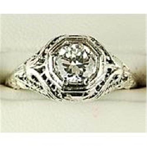 This ANTIQUE Style ring is an AUTHENTIC and ACCURATE copy of a ring from 1925 but THIS one is in MINT condition! It is STERLING SILVER and it features a beautiful Genuine WHITE SAPPHIRE = .80 CARATS! The Sapphire is surrounded by very beautiful filigree work that was typical of the 1920's. This ring can be worn as an 'Antique WHITE Sapphire Engagement Ring' - or - as an 'Antique WHITE Sapphire ring'. It is a Size 5 1/4 and it can be resized either larger or smaller.