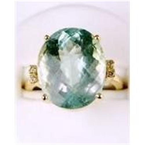 This 14k Yellow Gold Ring features the most beautiful AQUAMARINE. The AQUAMARINE is Oval in shape with 'checkerboard' faceting and it = 14.40 CARATS!! There are 2 Diamonds set each side as accent. his ring is a Size 6 1/4 and it can be resized either larger or smaller.