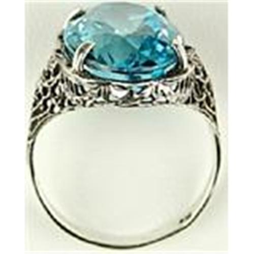 This ANTIQUE Style ring is an AUTHENTIC and ACCURATE copy of a ring from 1925 but THIS one is in MINT condition! It is STERLING SILVER and it features a beautiful Genuine Oval BLUE TOPAZ = 10.5 CARATS! The BLUE TOPAZ is surrounded by very beautiful filigree work that was typical of the 1920's. This ring can be worn as an 'Antique BLUE TOPAZ Engagement Ring' - or - as an 'Antique BLUE TOPAZ ring'. It is a Size 6 and it can be resized either larger or smaller.