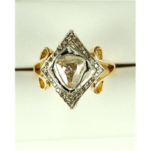 This ANTIQUE Style Ring is an Accurate and Authentic copy of a ring from the GEORGIAN Period CIRCA 1800 and it is in MINT condition. This Ring features a DIAMOND = ONE CARAT surrounded by ROSE CUT DIAMONDS. The DIAMOND as well as the ROSE CUT DIAMONDS are Authentically set in Silver as is typical of Georgian Jewelry and the band is SOLID 14k Yellow GOLD. The Ring measures 1 inch in length and it is a Size 6 1/2. It can be resized either larger or smaller.