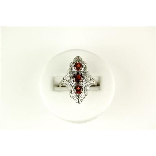 This ANTIQUE Style Dinner ring is an AUTHENTIC and ACCURATE copy of a ring from 1925 but THIS one is in MINT condition! It is STERLING SILVER and it features THREE beautiful Genuine GARNETS = 1.25 CARATS! The GARNETS are surrounded by very beautiful filigree work that was typical of the 1920's. It is a Size 6 3/4 and it can be resized either larger or smaller.