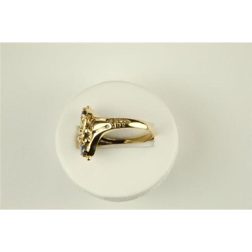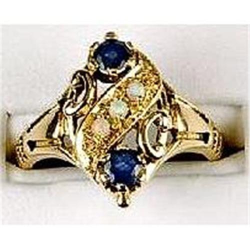 This Antique Style ring is an Authentic and Accurate copy of a ring CIRCA 1900 and THIS one is in MINT condition! It is a 9K Yellow Gold Marquise shaped Ring featuring 2 GENUINE SAPPHIRES with 3 small OPALS swirled between them as accent. This ring is 3/4 inches in length. It is a Size 7 and it can be resized either larger or smaller.
