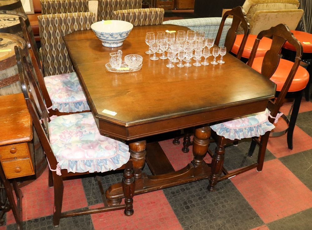 ANTIQUE TABLE (40"X52.5"X31") WITH 4 CHAIRS