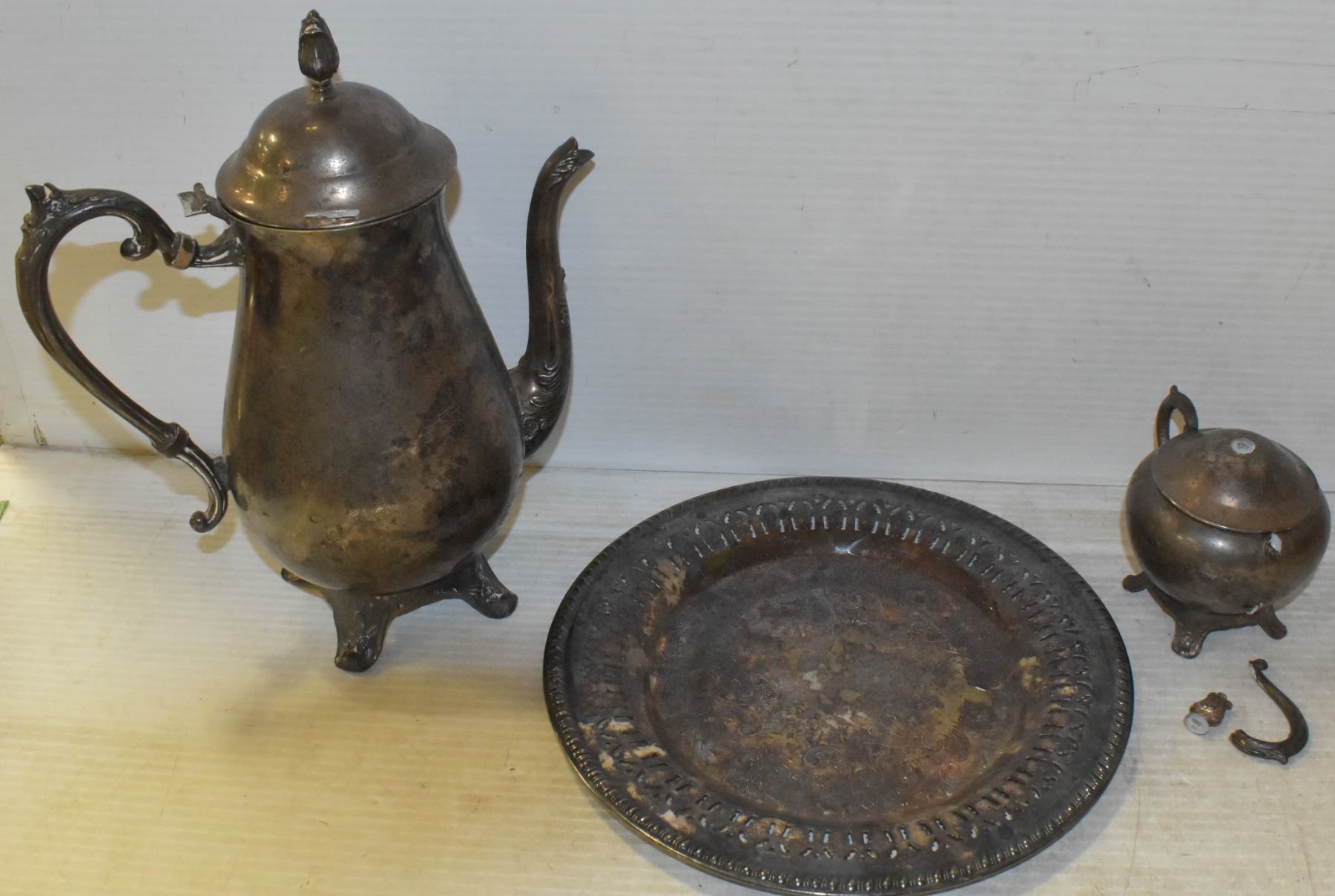 ANTIQUE TEA SET WITH PLATE, CREAM, SUGAR & 2 LIDS
