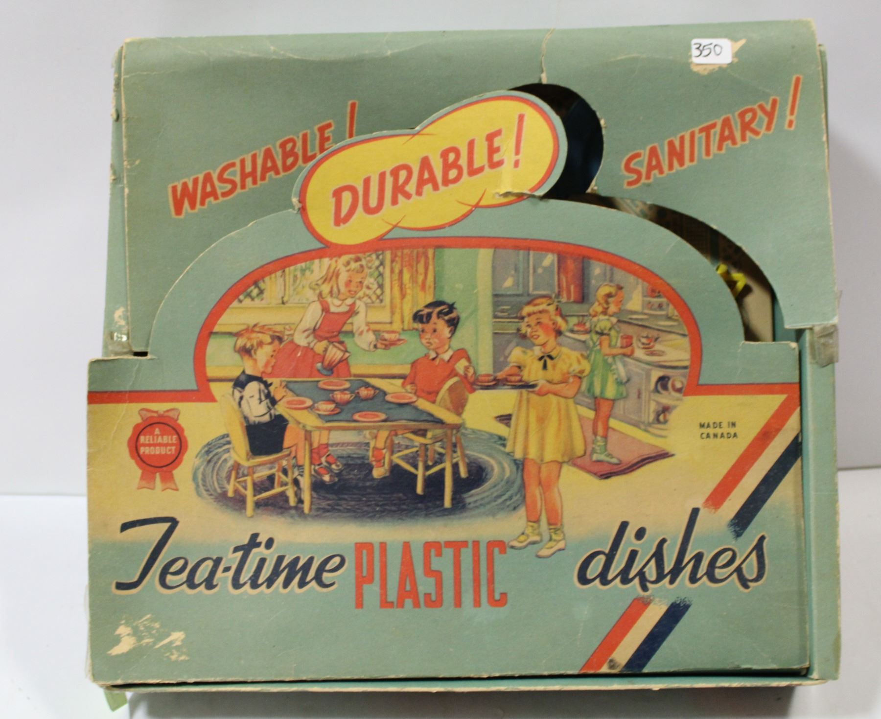ANTIQUE TEA TIME PLASTIC DISHES IN BOX