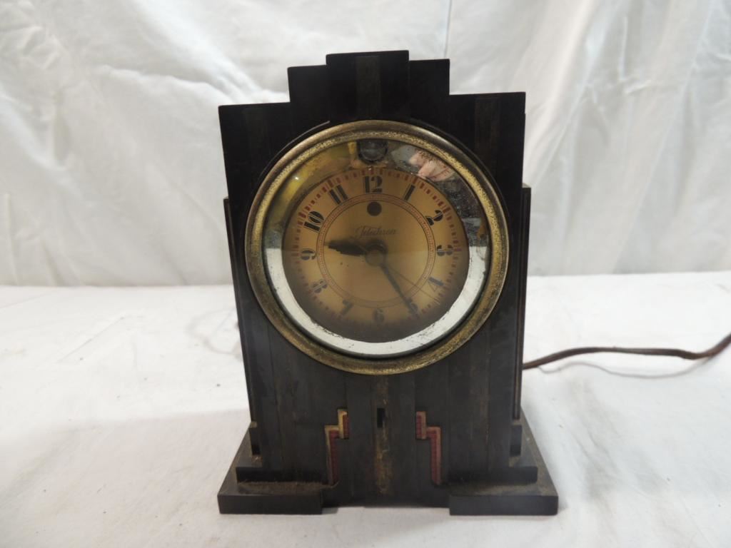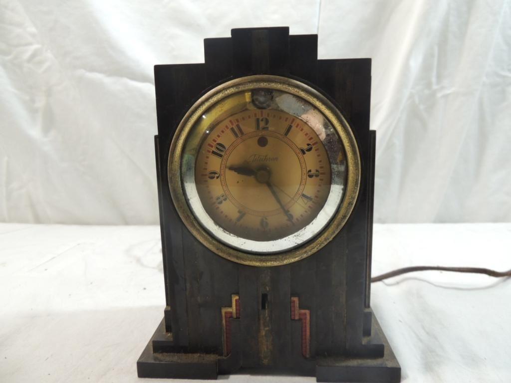 ANTIQUE ELECTRIC CLOCK, COLLECTORS CLOCK, MANTLE CLOCK, DESK CLOCK, TABLE CLOCK, ELECTRIC CLOCK, COLLECTIBLE, AS SHOWN SEE PHOTO FOR MORE DETAILS.