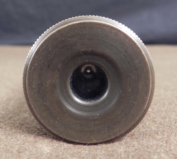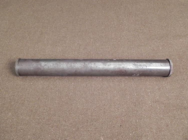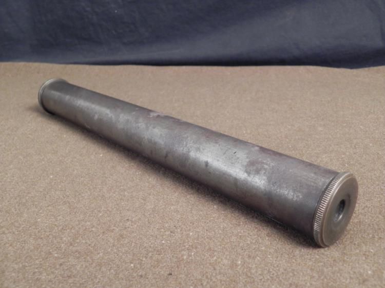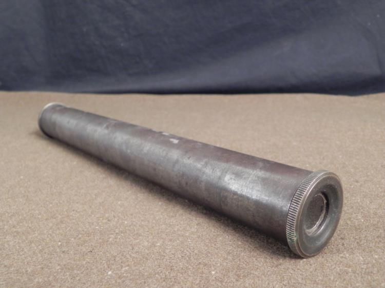 ANTIQUE TELESCOPE/SURVEYERS SCOPE-MKD-NOT READABLE INTERESTING STEEL-MAGNETIC SCOPE-TOP & BOTTOM HAVE BRASS ADJUSTAB;E SCREW ON LENSES-VERY NARROW & SMALL SIGHT THRU VIEWER-MARKINGS AND DECORATIVE WORK, BUT NOT READABLE-13 1/2" LONG