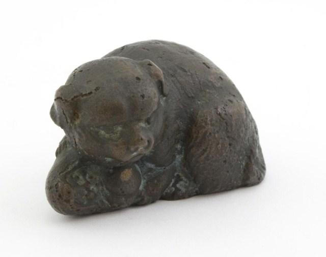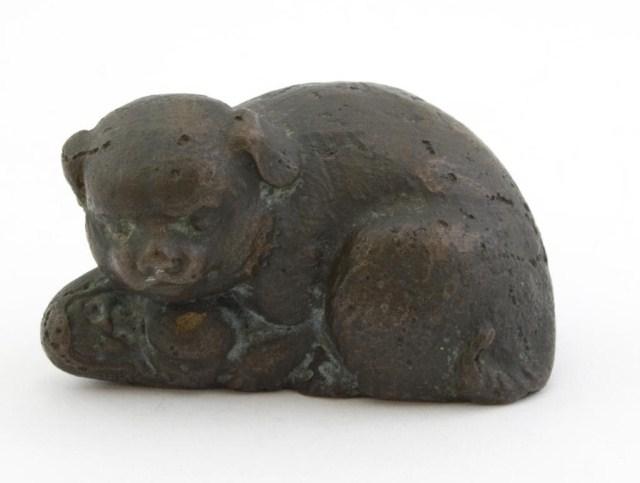Circa 1920's. Made by Tiffany Studios, New York. Marked to base. Depicts baby rottwieler. 2" length.