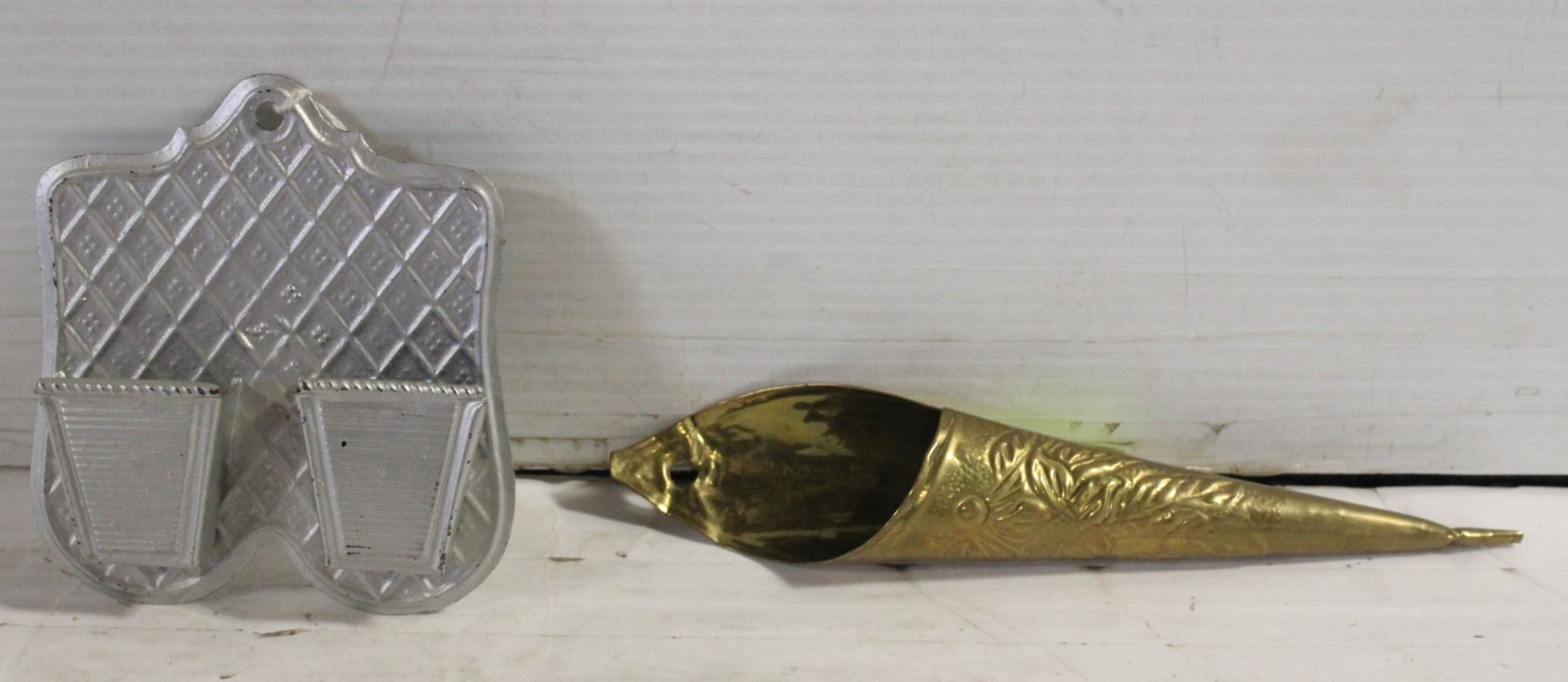 ANTIQUE TIN AND BRASS MATCH STICK WALL HOLDERS