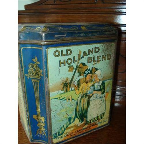 This beautiful Tin is of OLD DUTCH BLEND COFFEE by The Gold Standard Manufacturing Co. Winnipeg Manitoba (Canada). Another fine antique tin! The tin is decorated a Dutch Scene It is beautifully decorated. The tin is gorgeous and most decorative! It is a large tin and measures about 7 1/2 inches high by 7 1/4 inches across, being 5 1/2 inches wide, in very nice original condition & highly decorative. A splendid addition to ones antique coffee tins collection. Do view our other tins including several hard to find Huntley and Palmers tins we have listed.