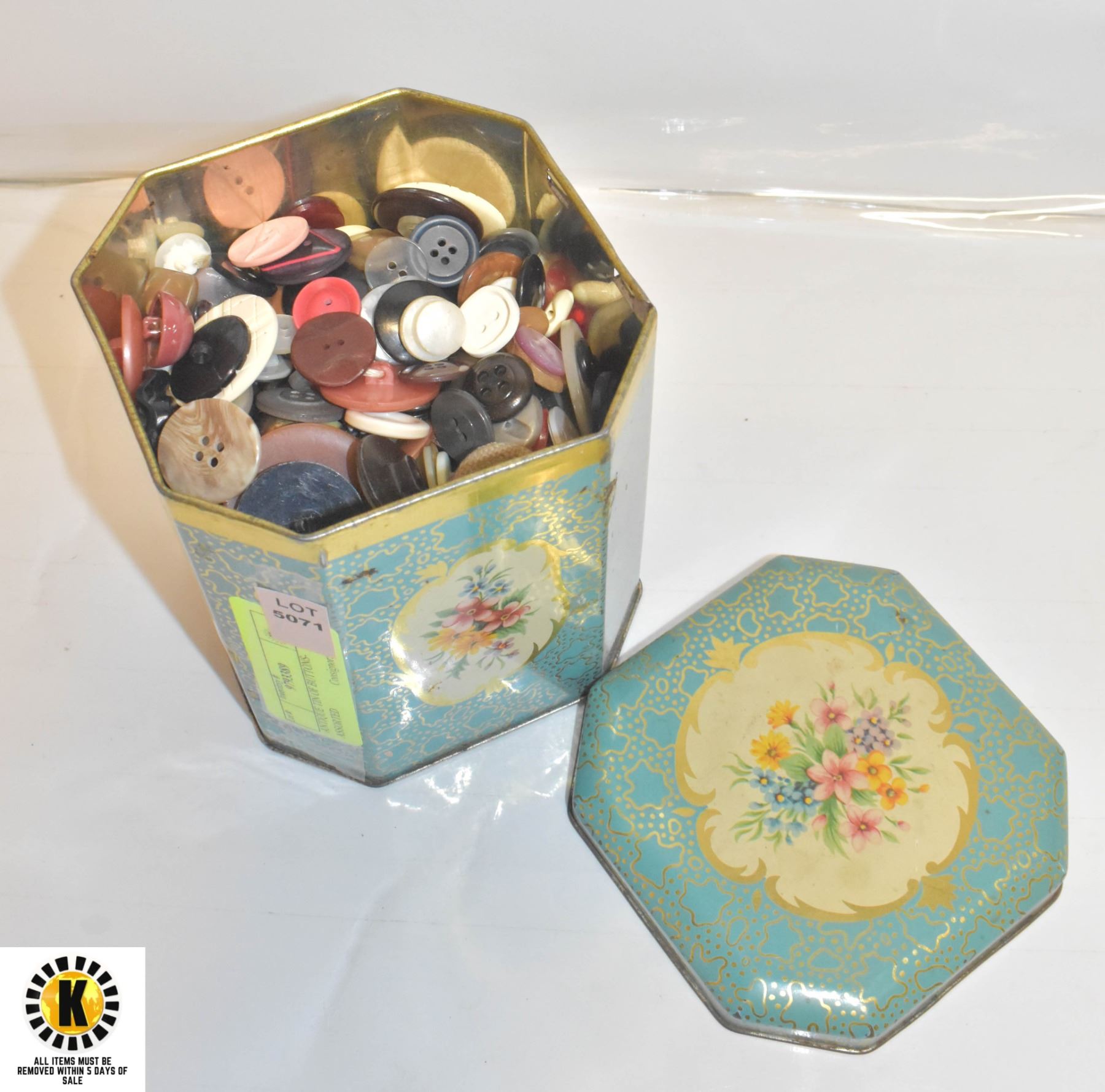 ANTIQUE TIN OF BUTTONS- ASSORTED