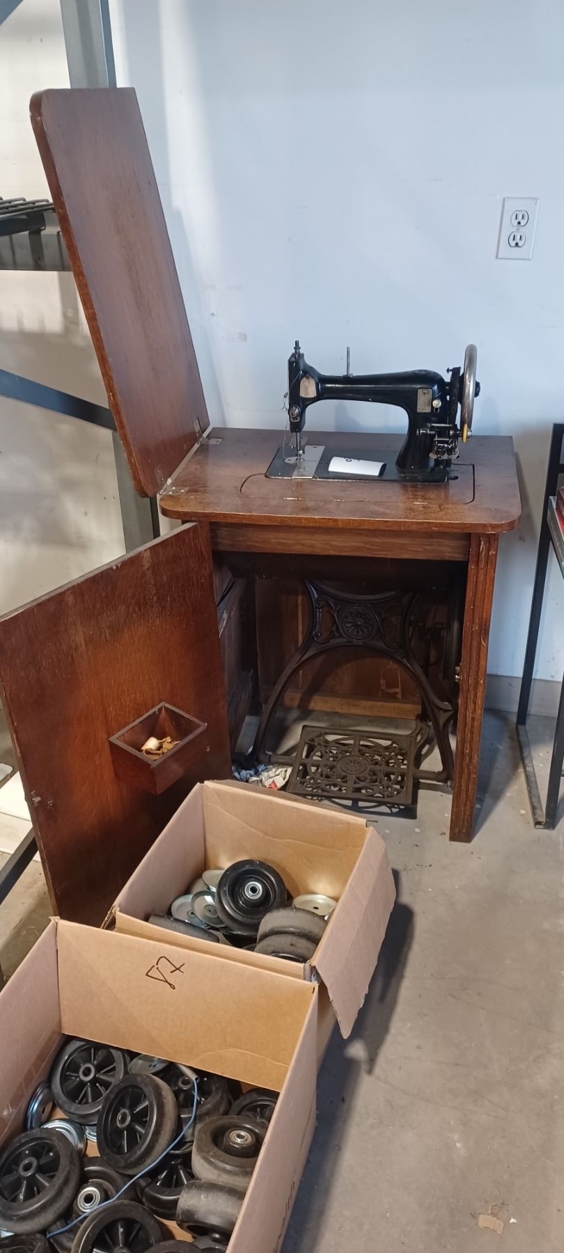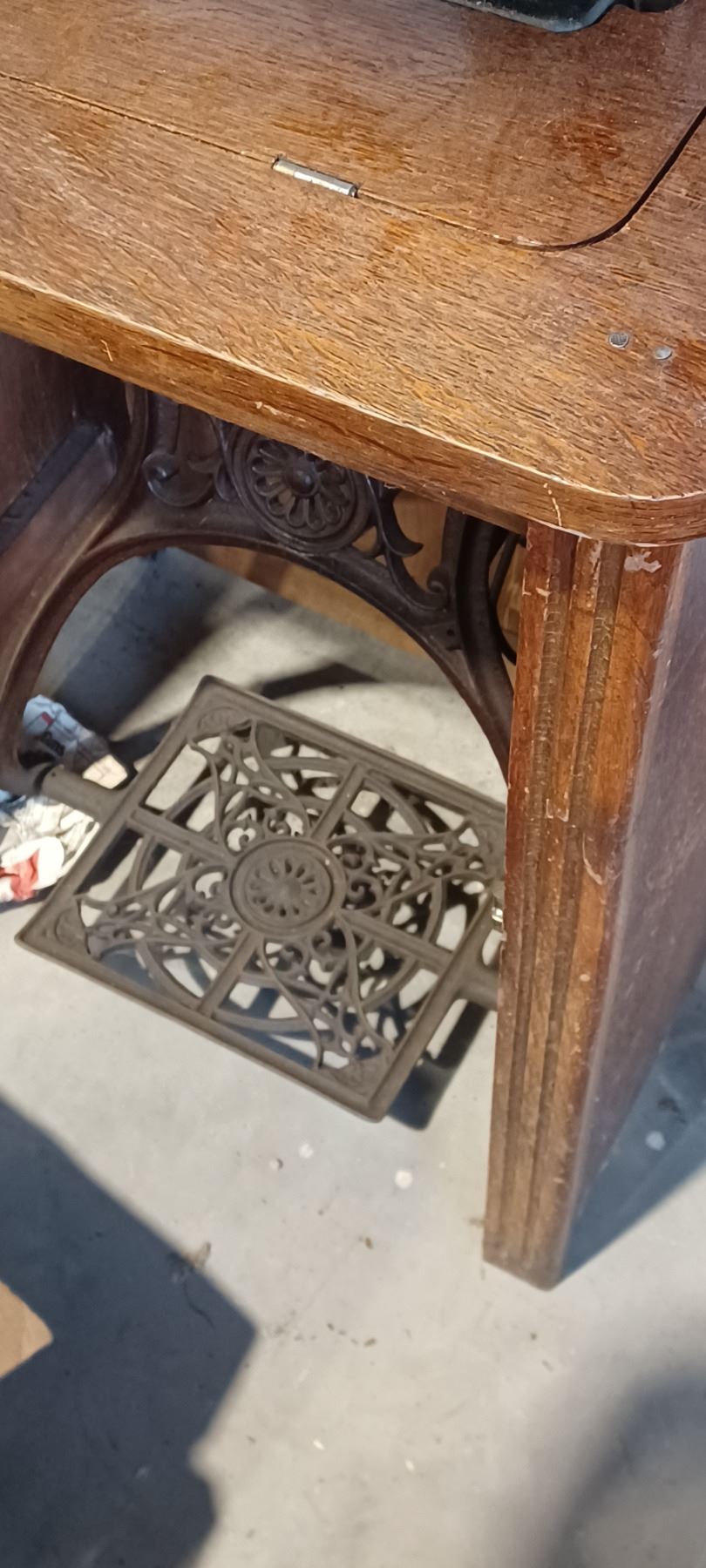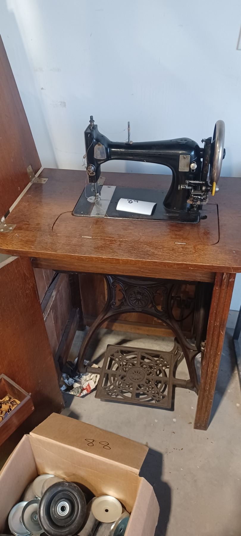 ANTIQUE TREADLE SEWING MACHINE AND CABINET FAIR CONDITION