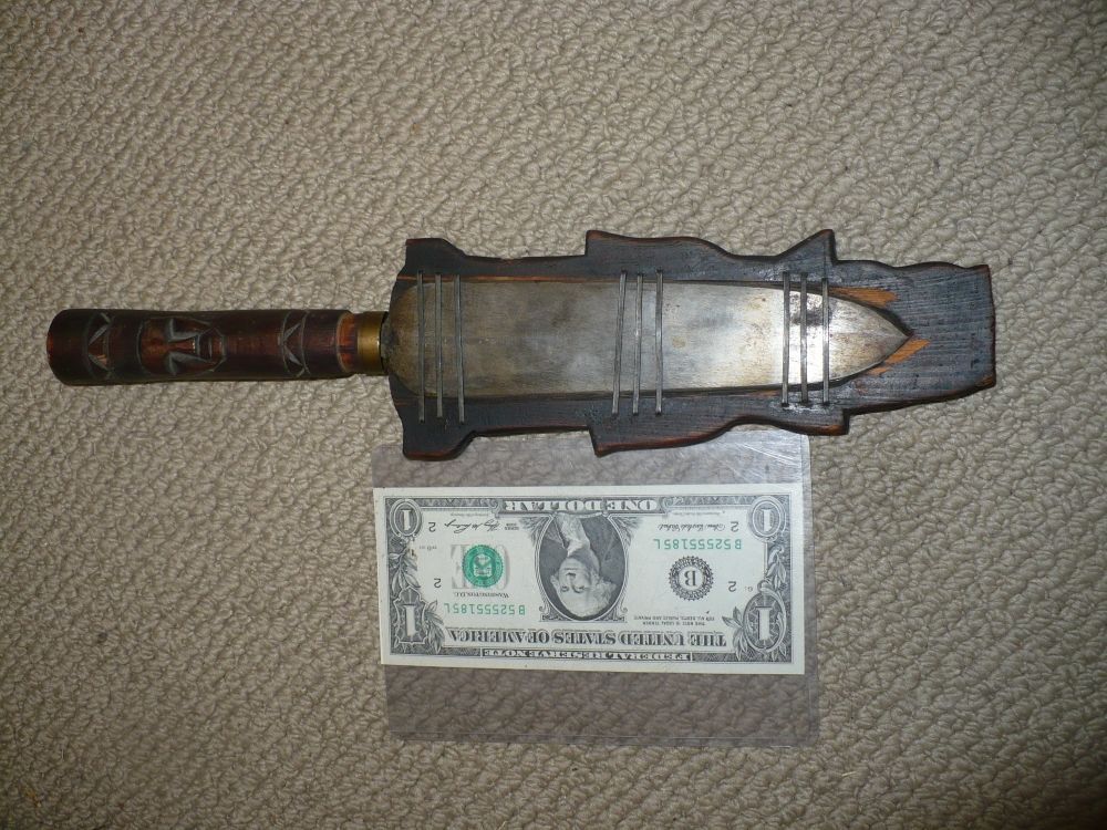 This is an authentic antique tribal ceremonial or sacrifice dagger. This is not a film prop! It is all hand carved wood, and hand forged metal. This has been in my personal possession for over 40 years, and it looked just like this back then.