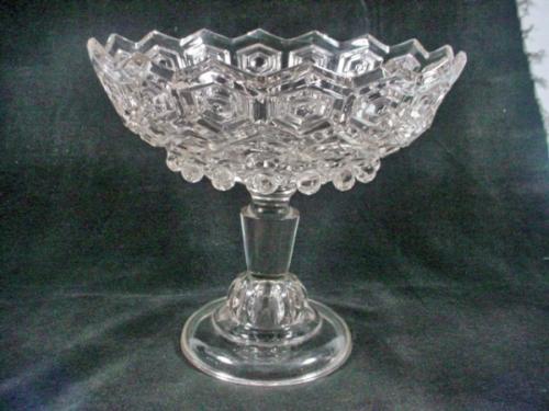 ANTIQUE UNMARKED PRESSED GLASS PEDESTEL DISH 8" X 10".