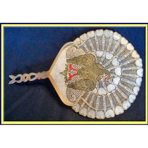 The tiny piercings are amazing in their regularity and show the technical skill of the craftsman who made the fan.<P><P>