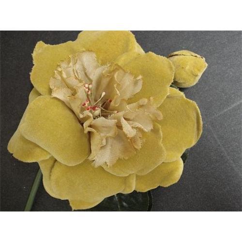 BEAUTIFUL OLD GOLD YELLOW VELVET LARGE ROSE, IT IS MADE WITH PIN AS A BROOCH,as per images - Excellent used condition,free from stains or holes - Measuring about 8" long, THANKS.