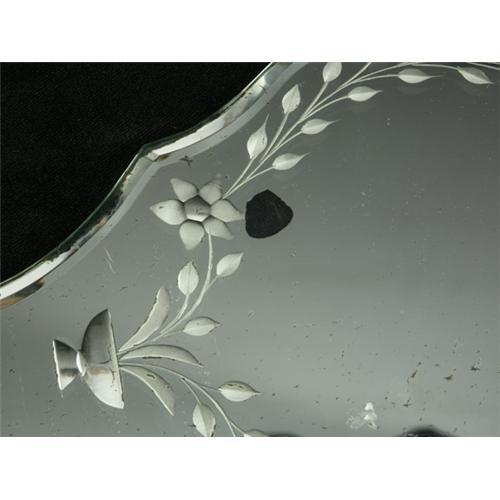 MIRROR: Venetian-style beveled glass hand mirror with floral spray emerging from a vase, heart and arrow motif, inscription ''M to H'' at handle.Condition noted. Early 20th c. 16.5'' L