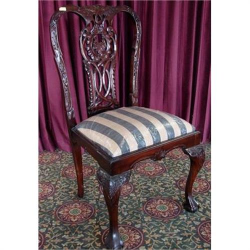 YOU ARE BIDDING ON A SET OF 1 CHAIR. JUST WHAT YOU'VE BEEN LOOKING FOR... FABRIC WILL MAY VARY... TERRIFIC FORM AND SHAPE... FABULOUS ANTIQUE STYLE WAVERLY UPHOLSTERY... EXQUISITE PIERCED BACKS WITH CUSHIONED SEATS... WHAT A GORGEOUS SET OF 1 FABULOUS VICTORIAN ORNATE CHIPPENDALE DINING CHAIRS... This set is hand crafted in what is considered a lost art form. The aged walnut has darkened into a full-bodied chestnut brown, hand rubbed in a smooth bees wax finish. This SET OF 1 FABULOUS VICTORIAN ORNATE CHIPPENDALE DINING CHAIRS are sure to become a highly sought after investment, to insure ownership of this quality set.