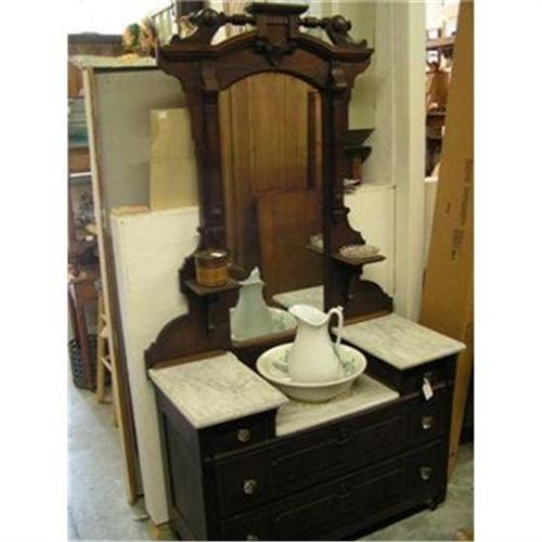 BEAUTIFUL VICTORIAN DRESSER WITH MARBLE TOPS.MIRROR IS IN ORIGINAL CONDITION AND HAS NORMAL WEAR.