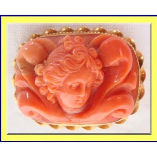 <tr><td>Title:ANTIQUE VICTORIAN GOLD CARVED CORAL BROOCH</td></tr>