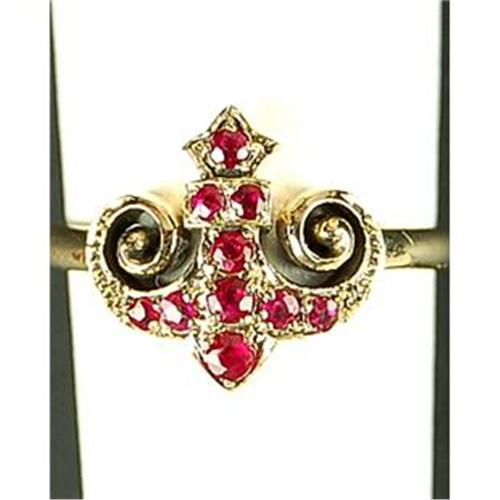 This ANTIQUE Victorian Style ring is an Authentic and Accurate copy of a ring from the 1900's but THIS one is in MINT condition! The ring is 9K Gold and it features GENUINE RUBYS with swirls of gold work. The ring is a Size 6 1/4 and it can be resized both larger and smaller.