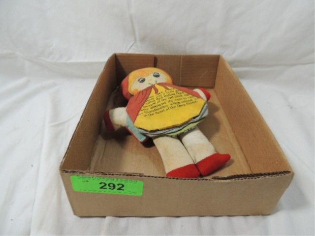 LITTLE RED RIDING HOOD CLOTH DOLL WITH STORY INCLUDED ON CLOTH PAGES. 11" LONG. AS SHOWN. EXCELLENT CONDITION. SEE PICTURES FOR DETAILS.