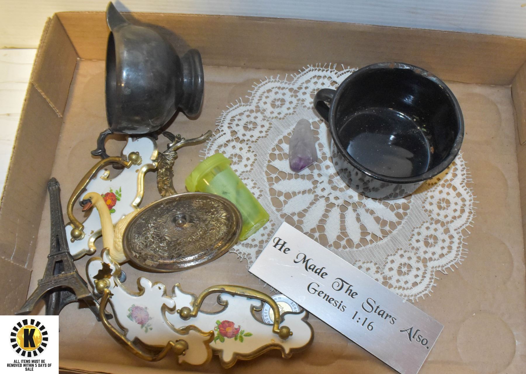 FOUNTAIN PEN TIPS , SCHLEICH SWAN, SILVER PLATE CREAMER, EIFFEL TOWER, ETC