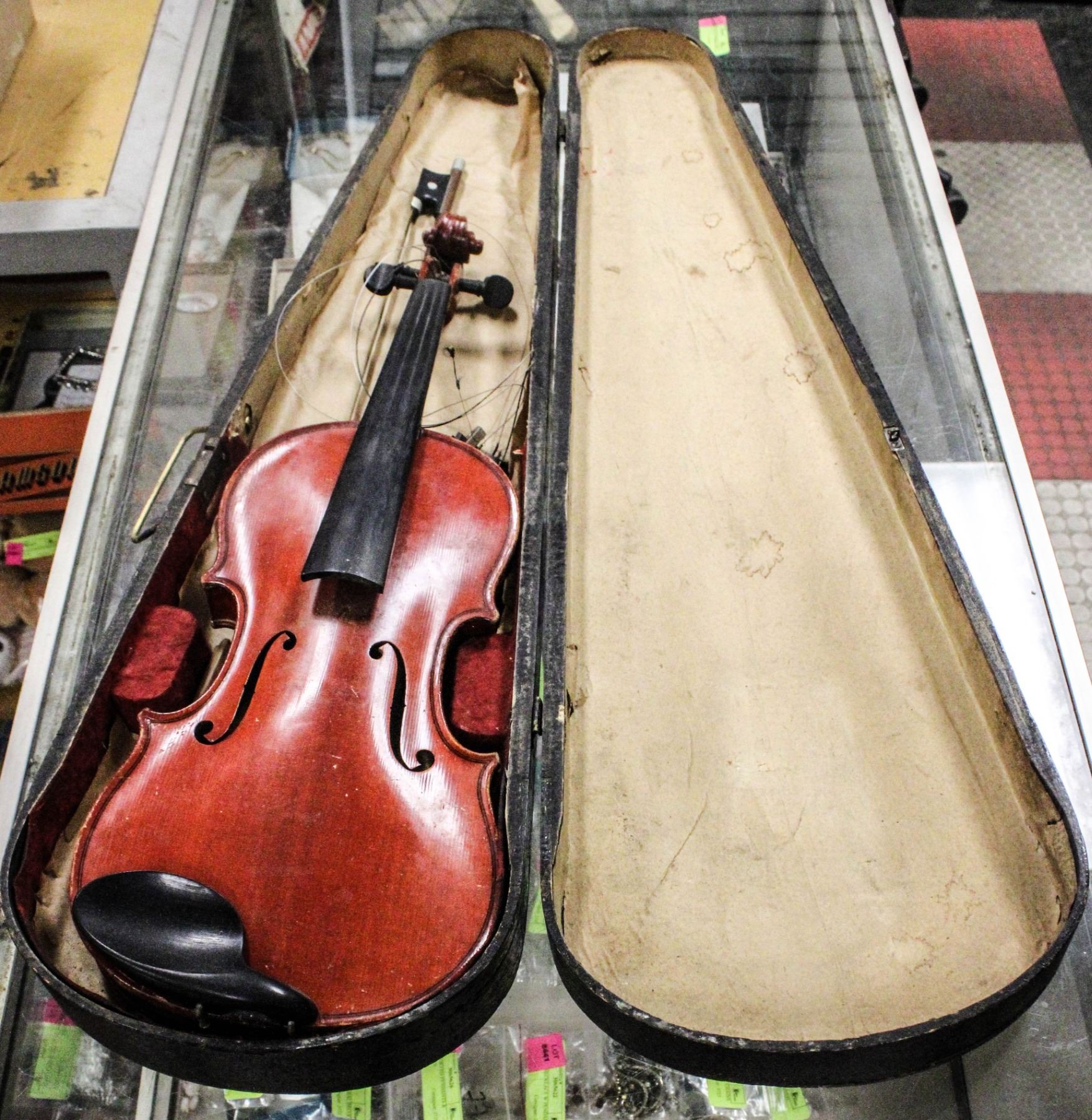 ANTIQUE VIOLIN IN WOODEN CASE FOR REPAIR