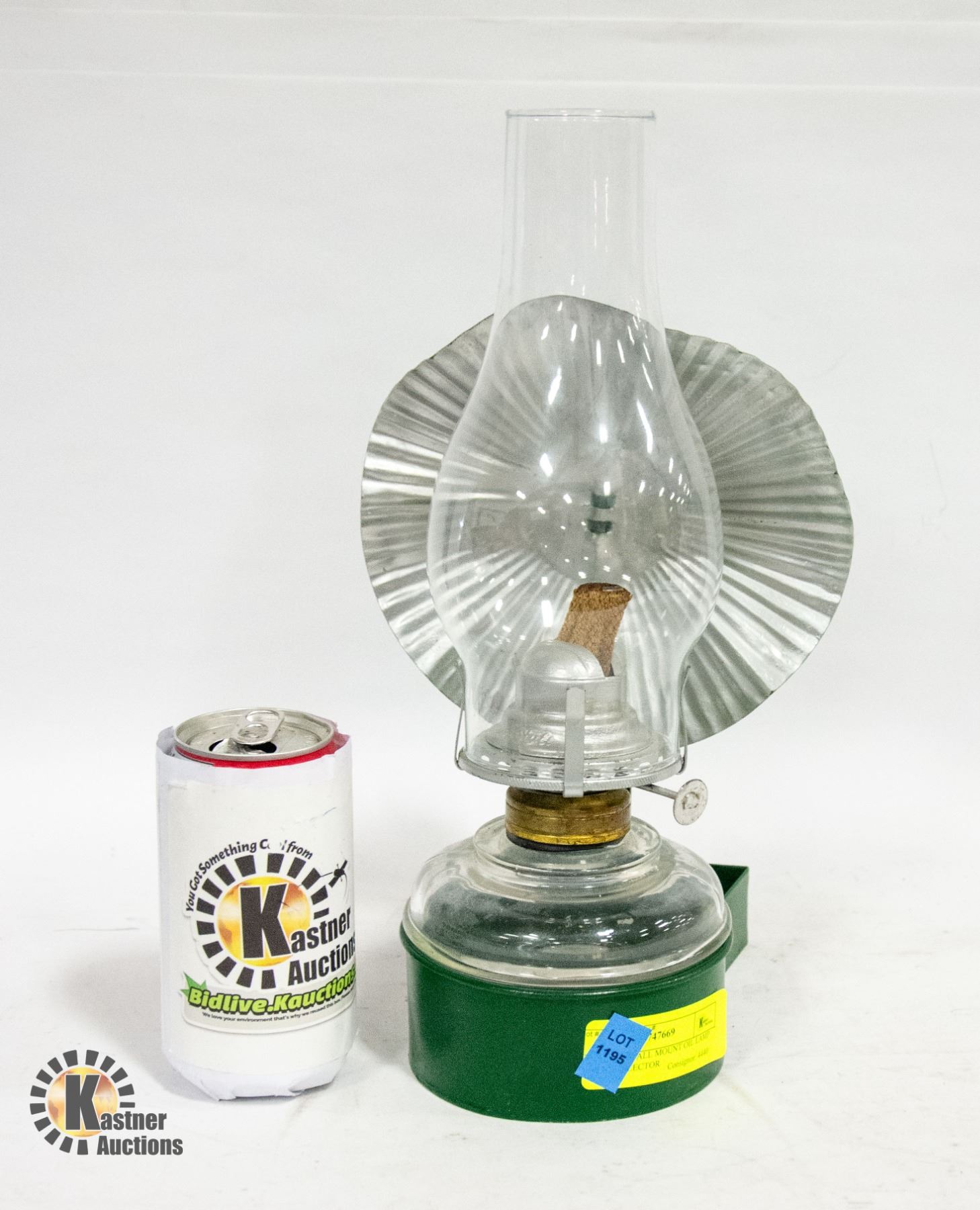 ANTIQUE WALL MOUNT OIL LAMP WITH REFLECTOR