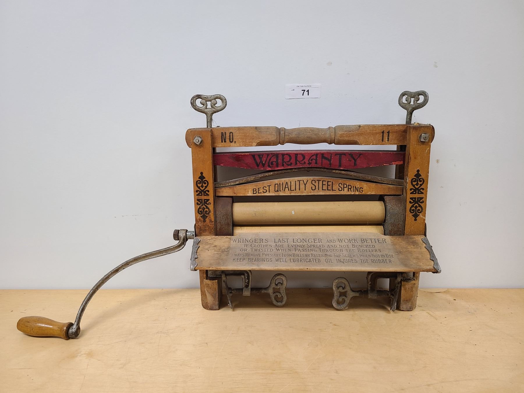 ANTIQUE WARRANTY RINGER WASHER, WOOD