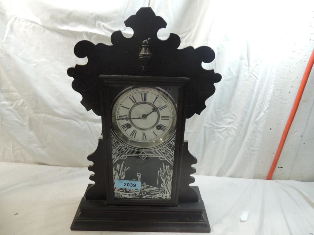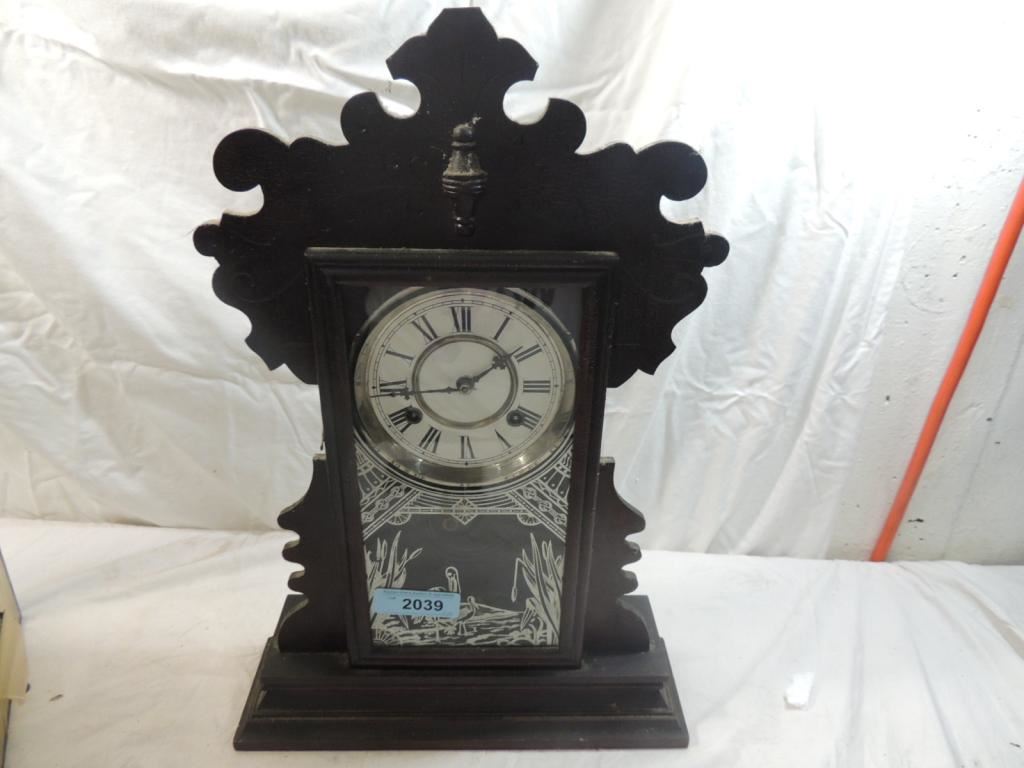FANCY PENDULUM, ORIGINAL LABEL, KITCHEN CLOCK DECORATIVE CUTOUT ORNATE DECORATIVE CLOCK, VINTAGE CLOCK, DECORATIVE GLASS CLOCK COLLECTIBLE VINTAGE CLOCK AS SHOWN SEE PHOTO FOR MORE DETAILS.