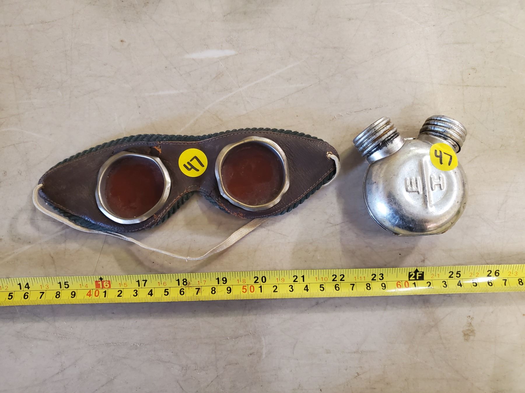 ANTIQUE WELDING GOGGLES & MOISON OIL BOTTLE