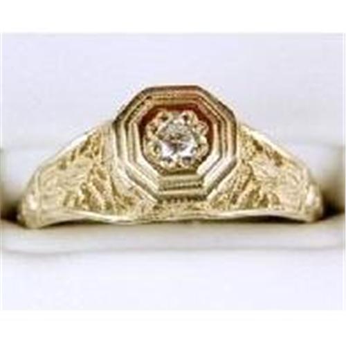 Antique 14k White Gold Filigree Ring featuring a SPARKLING DIAMOND = .07 CARATS! This ring is a Size 7 3/4 and it can be resized. This type of ring is often worn as an 'Antique Diamond Engagement Ring'.