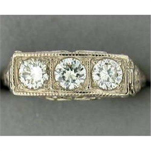 You can wear this stunning Diamond filigree ring as an: Antique Diamond Engagement Ring - or - as an Antique Diamond Wedding Band - or - as an Antique Diamond ring! Antique 14k White Gold Filigree ring featuring 3 round Diamonds set across the top, with a Total Weight = .60 CARATS! These Diamonds are all 'well matched, SI Clarity, I Color, with LOTS of sparkle'!The filigree work features exquisite hearts and flowers and the ring is in Mint condition!