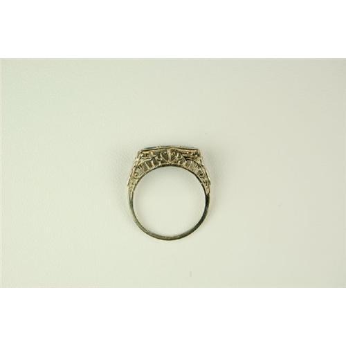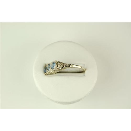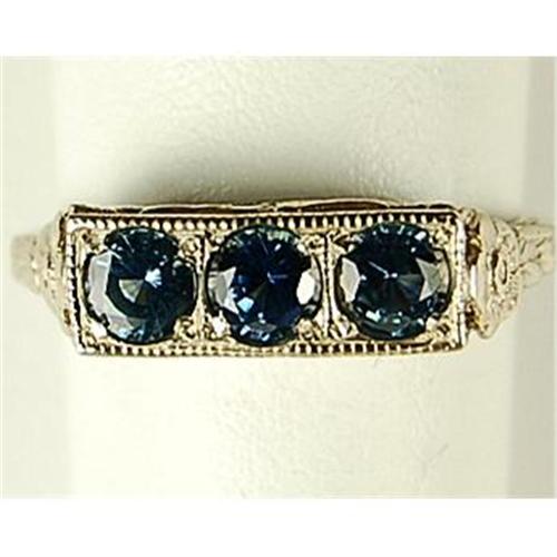 Antique 14k White Gold filigree ring, can be worn as an Antique Wedding Band, with 3 Genuine Blue Sapphires set across the top surrounded by very lovely filigree work. The Total Weight of the Sapphires = One Carat! This ring is a size 7 and I can easily resize it for you. It is in Mint condition!