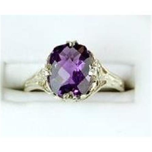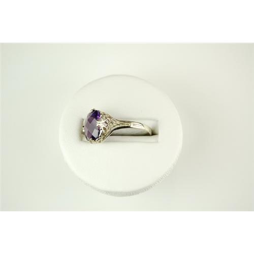 This ANTIQUE Style ring is an AUTHENTIC and ACCURATE copy of a ring from the 1930s but THIS one is in MINT condition! It is 14k WHITE Gold and it features a Genuine Cushion Cut AMETHYST = 2.50 CARATS! The AMETHYST is surrounded by exquisite FILIGREE work, typical of the period. This ring is a Size 6 and it can be resized either larger or smaller.