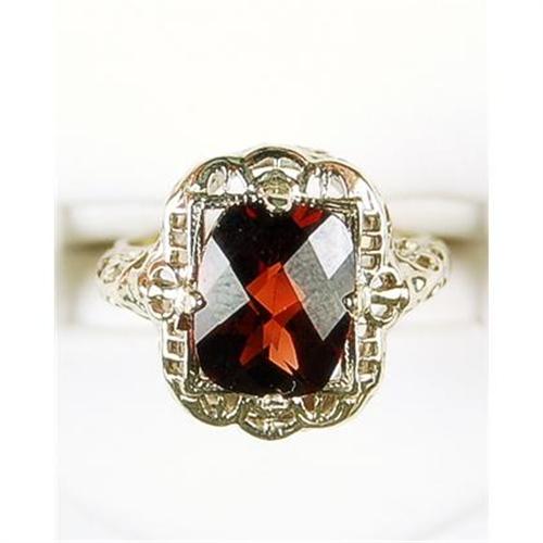 This Antique Style ring is an Authentic and Accurate copy of a filigree style ring from the 1930s but THIS one is in MINT condition. The ring is 14k White Gold and it features a GENUINE GARNET = THREE CARATS! It is a Size 4 1/2 and it can be resized either larger or smaller.