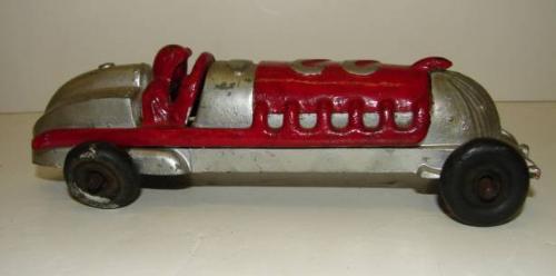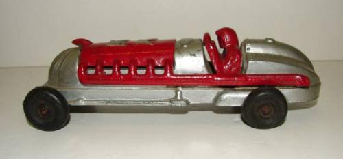 ANTIQUE WHITE METAL “22 RACER” IN ORIGINAL RED AND SILVER PAINT WITH ORIGINAL WHEELS. Excellent condition with very minor wear to paint.
