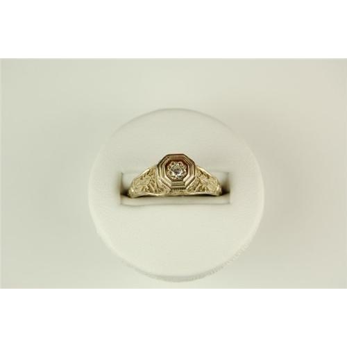 Antique 14k White Gold Filigree Ring featuring a SPARKLING DIAMOND = .07 CARATS! This ring is a Size 7 3/4 and it can be resized. This type of ring is often worn as an 'Antique Diamond Engagement Ring'.