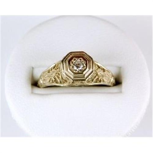 Antique 14k White Gold Filigree Ring featuring a SPARKLING DIAMOND = .07 CARATS! This ring is a Size 7 3/4 and it can be resized. This type of ring is often worn as an 'Antique Diamond Engagement Ring'.
