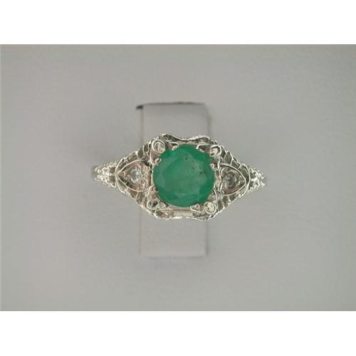 This Antique Style ring is an Authentic and Accurate copy of a ring CIRCA 1925 and THIS one is in MINT condition! It is a 14k White Gold FILIGREE Ring featuring a Round GENUINE EMERALD = ONE CARAT! The EMERALD is surrounded by exquisite Filigree work. This ring is a Size 5 1/4 and it can be resized either larger or smaller.